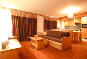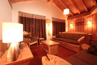 Zakwaterowanie typu LUX w ogromnych apartamentach 4*, w których nikt nie śpi w salonie to prawdziwie królewski nocleg. Rezydencja połóżona jest w centrum miejscowości (50 m do najbliższego wyciągu), do głównej gondoli Jandri Express 1 najlepiej dojechać jednak skibusem (900 m) .