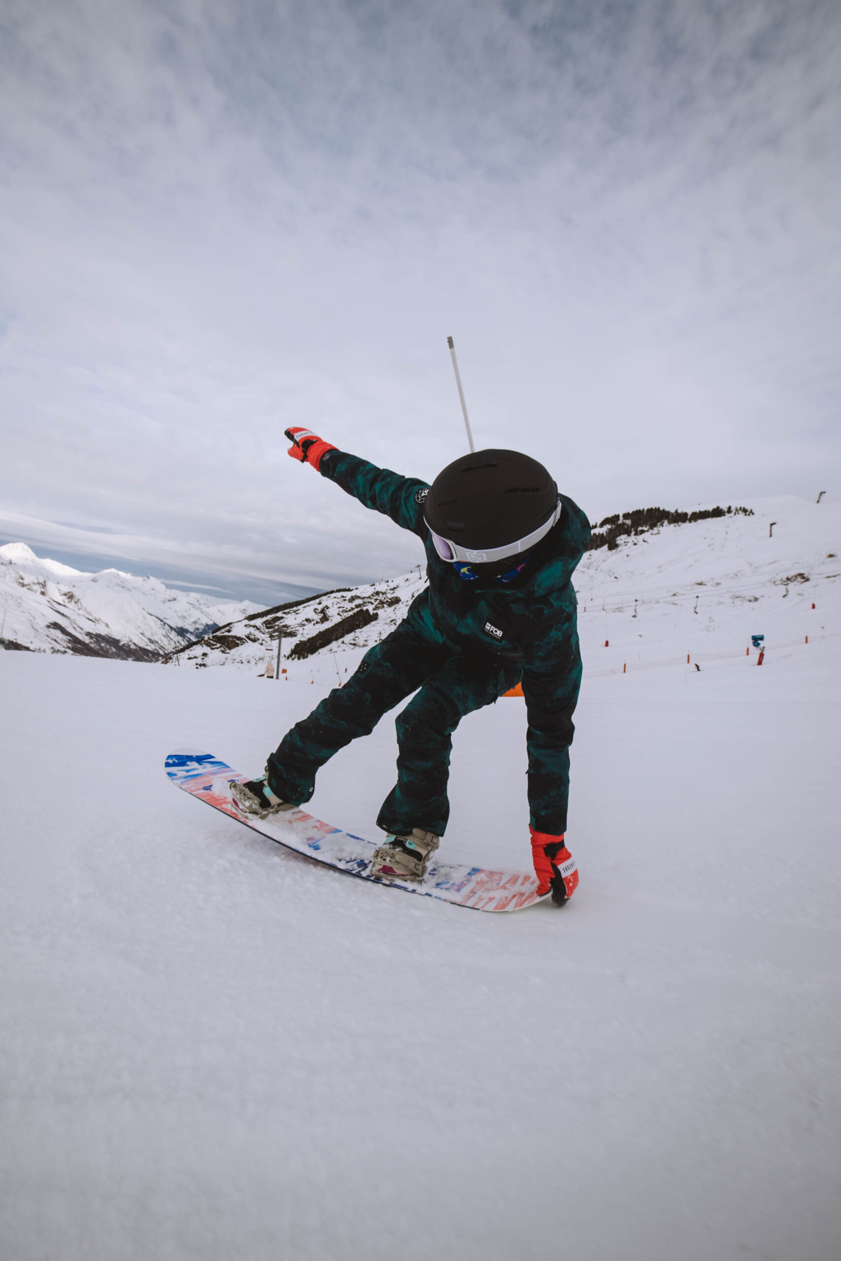 Podczas jazdy w dół stoku należy unieść przednią część deski, przenosząc ciężar ciała do tyłu. Następnie jak najdłużej utrzymać tą pozycję.