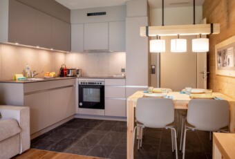 Apartamenty są w pełni wyposażone, mamy do swojej dyspozycji wszelkie nowoczesne udogodnienia; w każdym apartamencie jest TV-sat, ekspress do kawy, suszarka w łazience oraz podgrzewana podłoga, router wi-fi i w pełni wyposazona nowoczesna kuchnia. W rezydencja dominują ciepłe i jasne kolory i generalnie jest w dechę!