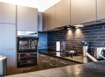 - W pełni wyposażony aneks kuchenny (wszystko co jest niezbędne do gotowania łącznie ze zmywarką)